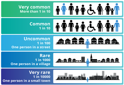 Tinnitus (ringing in the ears) - temporary (1 in 100) or permanent (1 in 5000 cases)